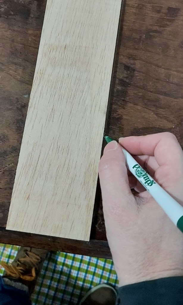 I started by marking my cut line. I knew roughly where to place it by lining up with the inside of the desk. I knew I needed to leave a lip so that I could sand a beveled edge to match the exterior edge on the top, so I accounted for a little overhang.