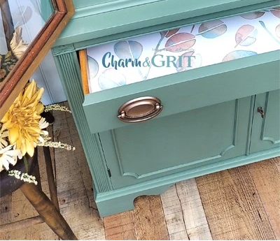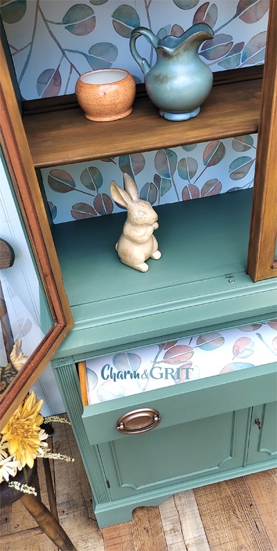 Attention to details matter. Since we had plenty of wallpaper leftover, I lined the top drawer as well.