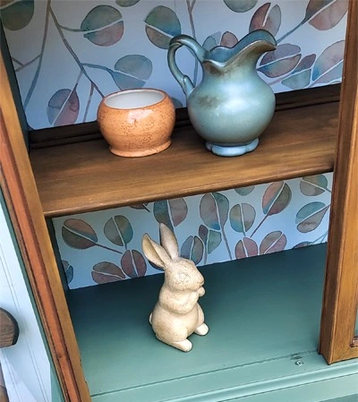 My friend sent me TONS of photos with different wallpaper samples. The really smart thing she did was place the samples inside the cabinet before she brought it to me. AND she even placed her dishes inside, so we knew what she wanted to display. That made a difference in terms of which paper would complement the items vs. distract.