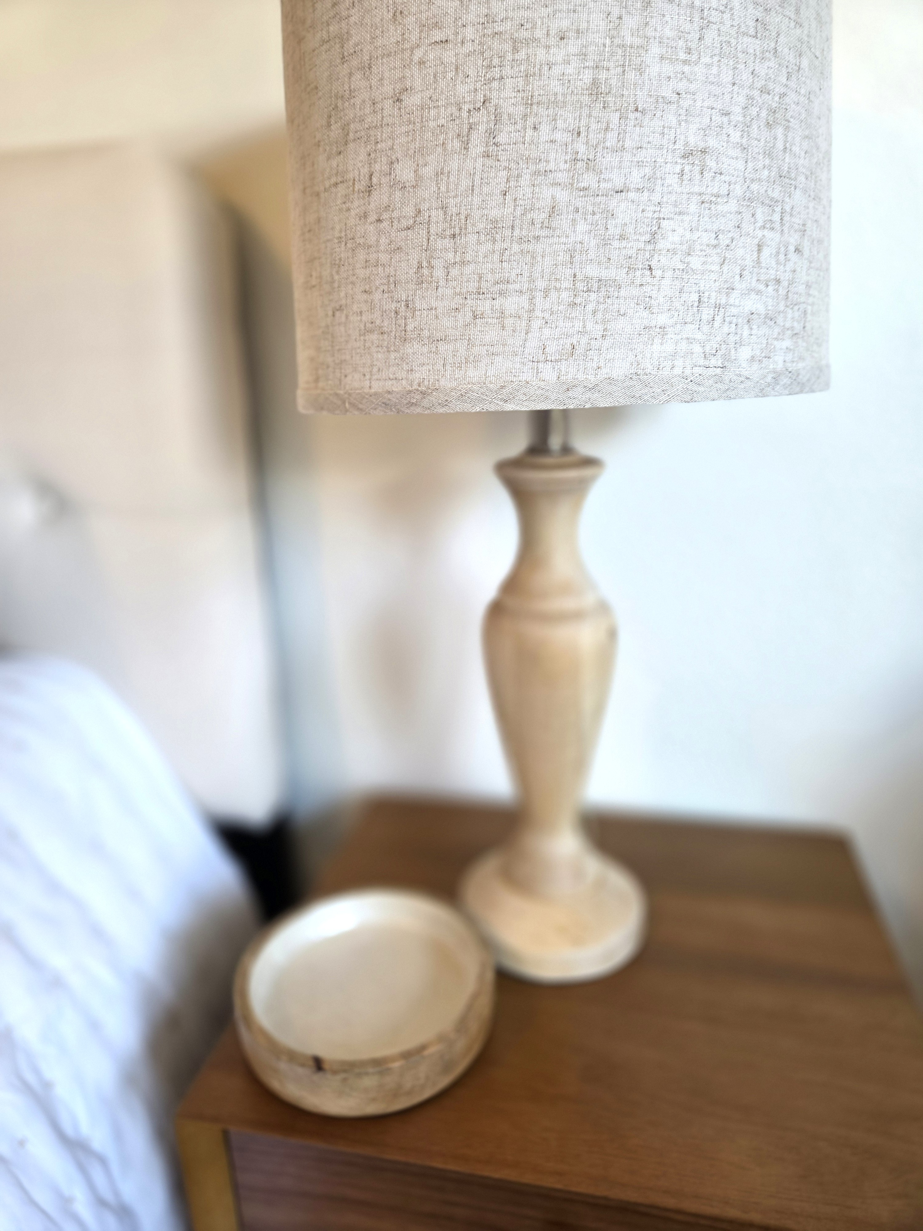 One of my favorite little wins in this space was the thrifted lamps. They started out looking tired and dated, but by sanding to the natural color and adding a fresh linen shade, they suddenly felt like boutique finds. It’s proof that you don’t always need brand-new décor — sometimes it just takes a little imagination (and a bargain-hunting eye!) to make something shine again.