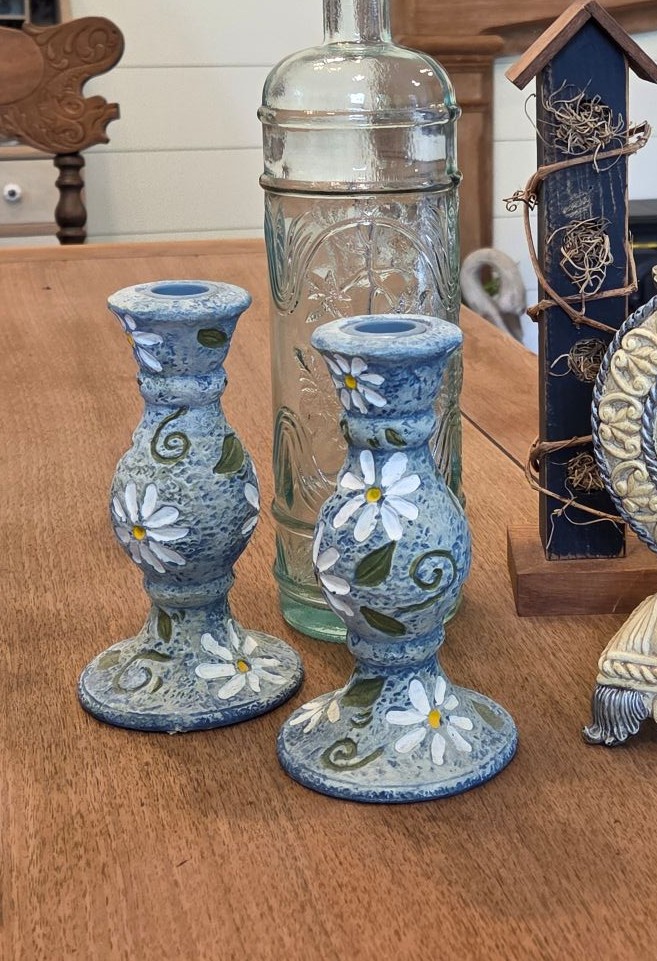 The embossed floral details on these candlesticks were beautiful — but the hand-painted blue, yellow, and white finish made them look more like a craft project than a home accent. I gave them a fresh, neutral paint finish to highlight the raised patterns. Now they feel classic, versatile, and ready to mix into almost any vignette.