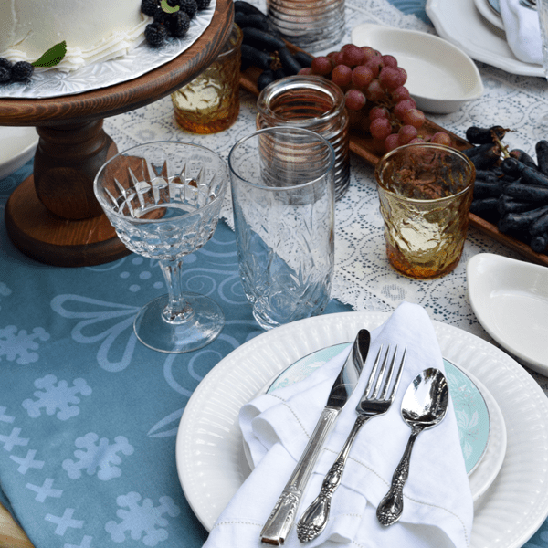Charm comes with imperfection. Your tablescape will be set with individual, unmatched vintage pieces. Crystal stemware, ironstone-style dinner plates, flatware, linen napkins…all hand-selected to fit the style you’ve chosen. It’ll put your guests at east – no fear of chipping grandmother’s fine china. Plus, they’ll feel the setting was chosen uniquely for them. Seats 6.