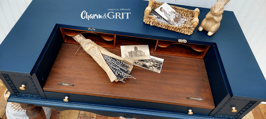 My signature custom color, Peacoat, transformed this vintage spinet desk into a classic heirloom to last for years. Yours could be transformed, too.